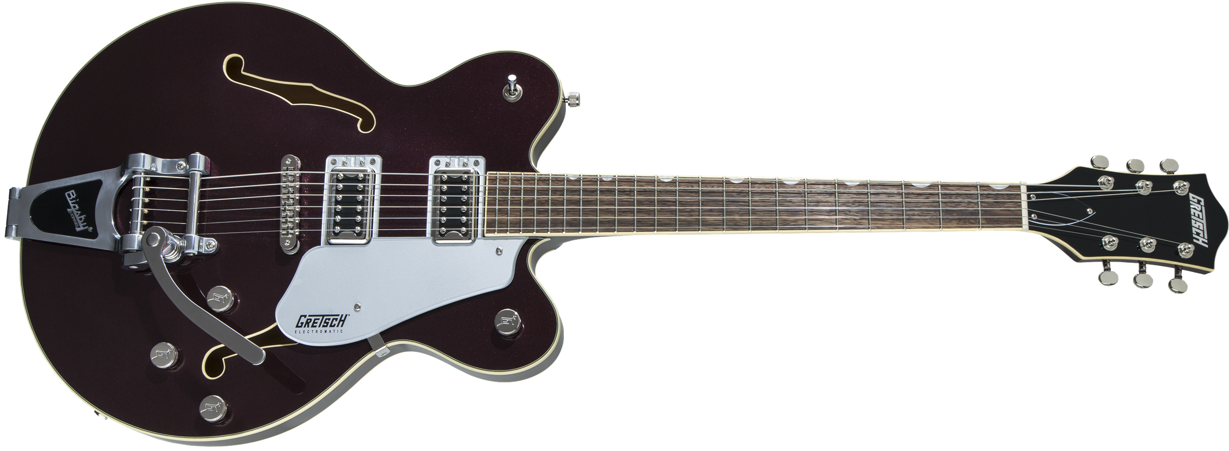 The G5622T's other features include an anchored Adjusto-Matic™ bridge, Bigsby® B70 vibrato tailpiece, Graph Tech® NuBone® nut and G-arrow knobs.