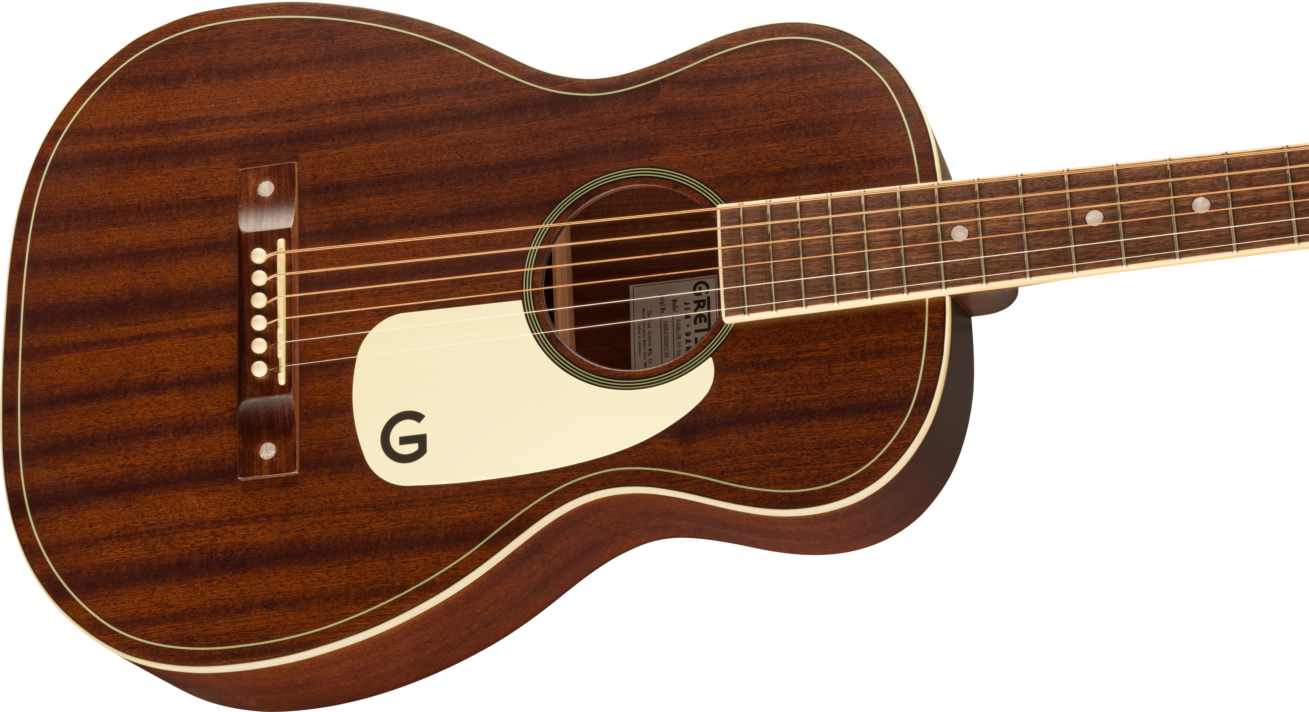 The X-braced body is crafted with select lightweight laminate tonewoods for an optimal balance of woody vintage tone and reliable durability, while the “C”-shape neck presents an inviting feel for hours of old-timey inspiration. Period-correct details such as a vintage-style pinned bridge, “G”-graphic pickguard, painted pinstripe purfling, 3-on-a-plate open-gear tuning machines and oversized dot fingerboard inlays combine for a nostalgic personality destined for any barnburner or jamboree.